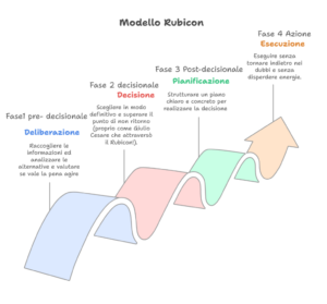 Dopo aver letto, sperimentato e riflettuto a lungo, mi sono imbattuto nel modello Rubicon. Un approccio al processo decisionale che mi ha colpito per la sua semplicità e per la chiarezza con cui distingue le fasi della scelta.